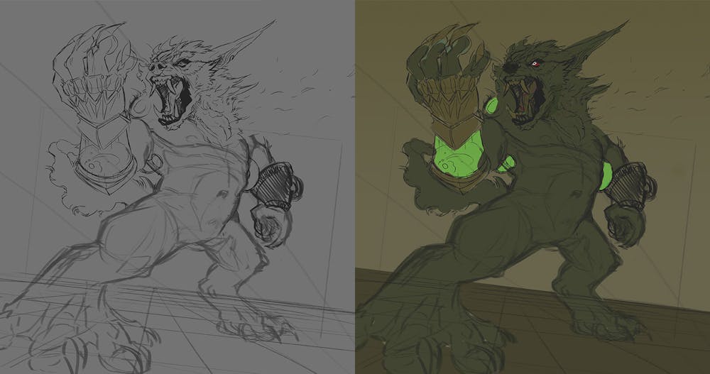 After watching arcane season 1 and predicting, that warwick will appear in season 2, I was thrilled to work on a fanart piece. I used this piece as an exercise to work on rather dynamic poses.