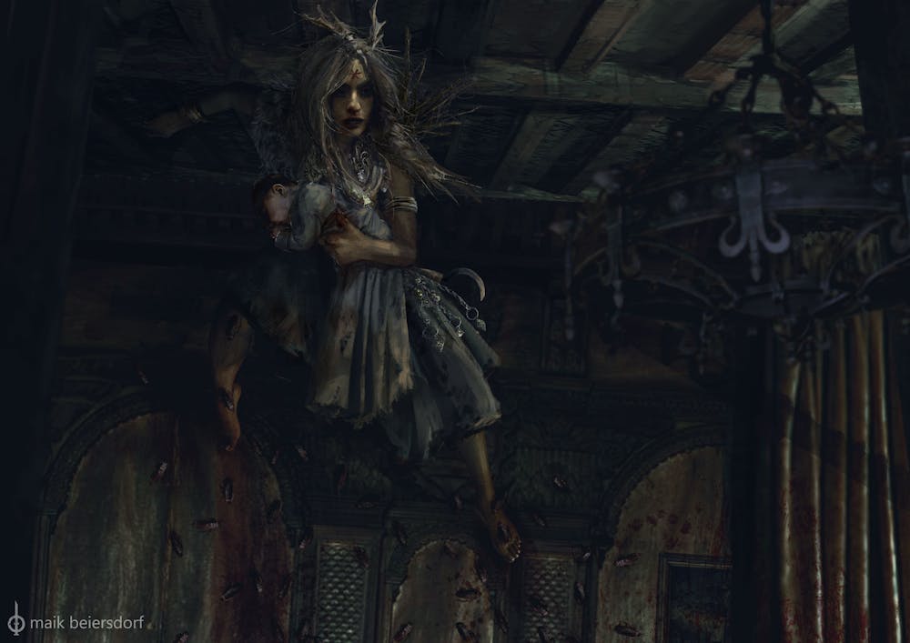 This one really is up for interpretation. You could argue the witch is getting caught in the act of stealing someone elses child...OR she herself is the mother and wants to protect it.