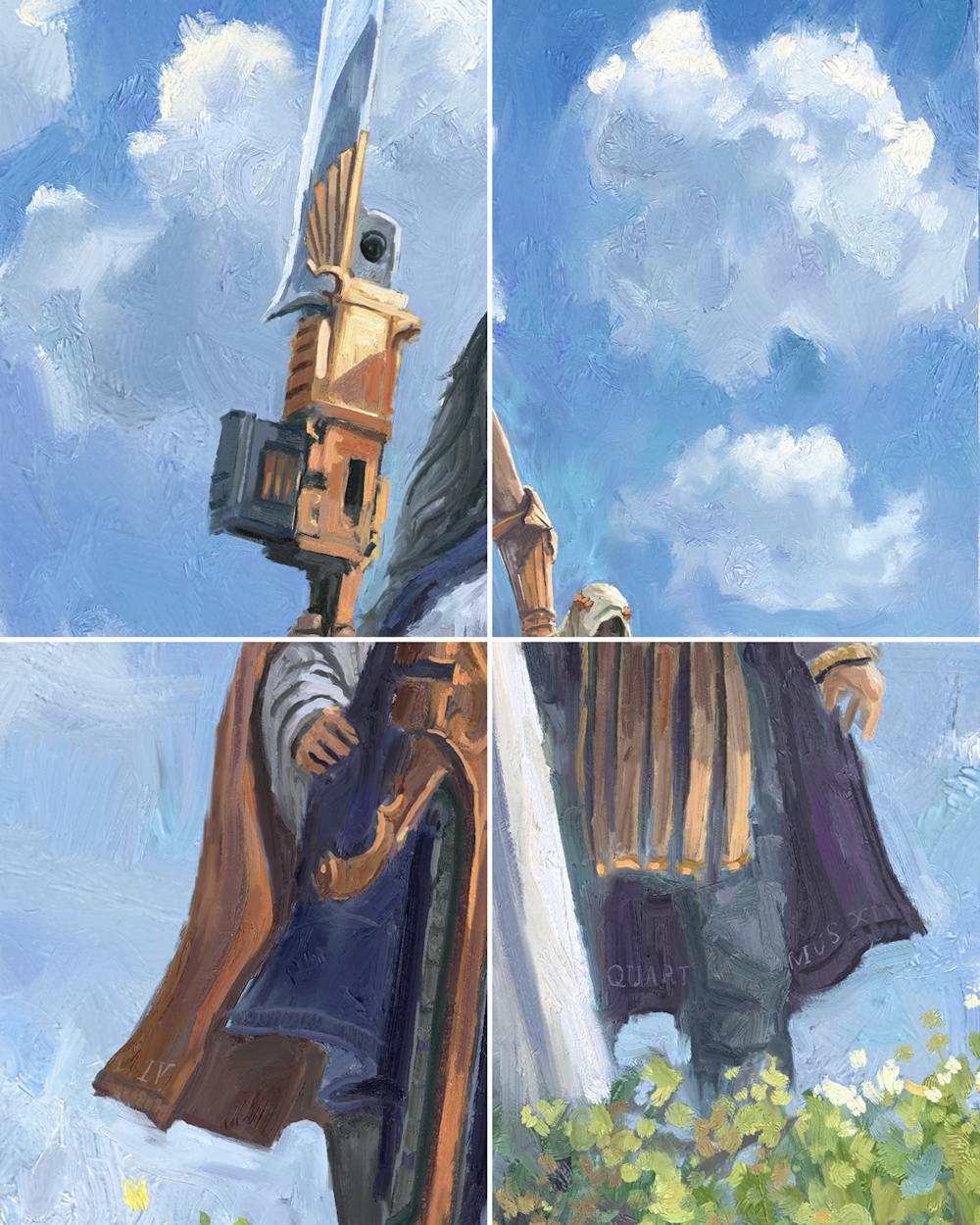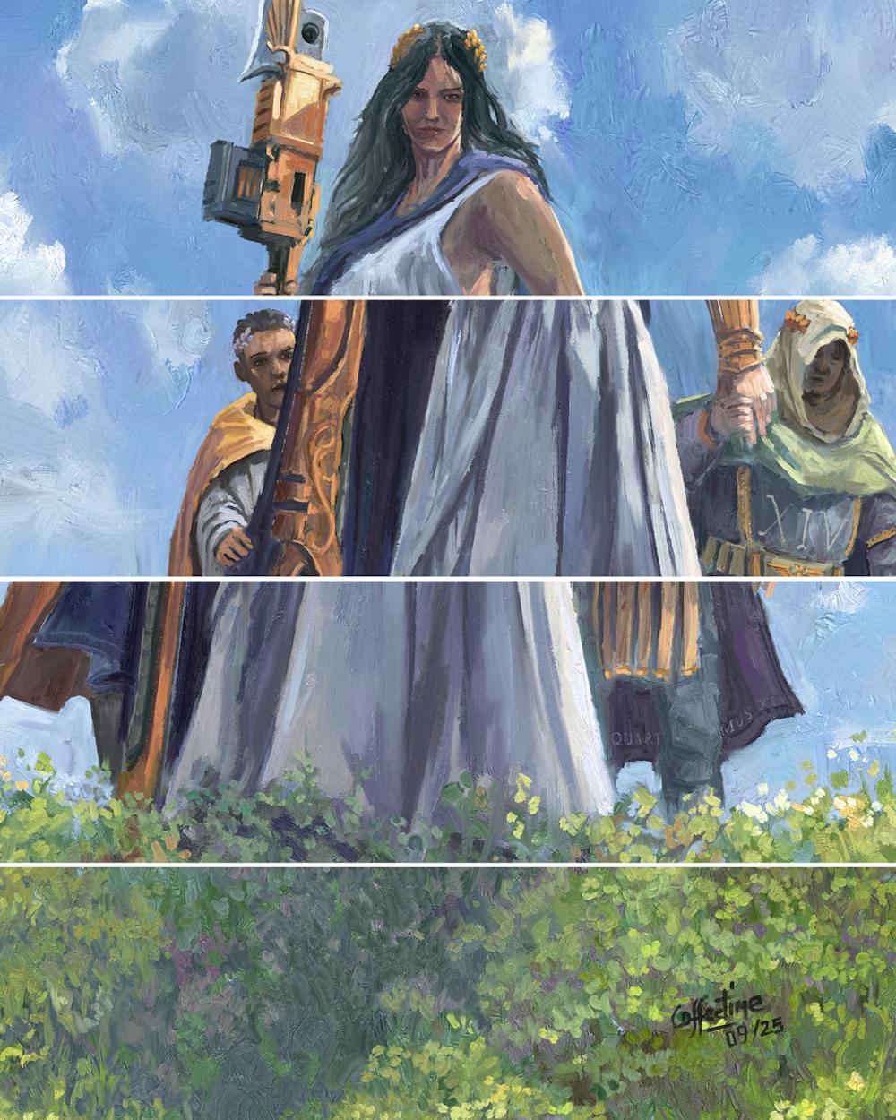 À travers l'inspiration du tableau "promenade" de Monet et l'ajout du lore de warhammer 40.000, je voulais ici représenter le côté maternelle, le rôle d'une mère, l'instinct maternelle.