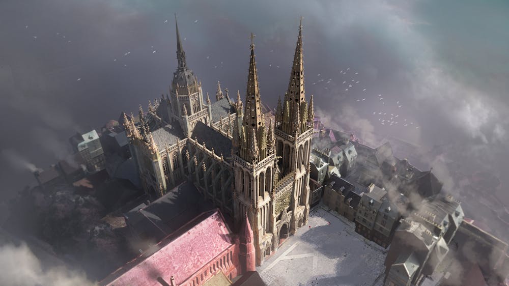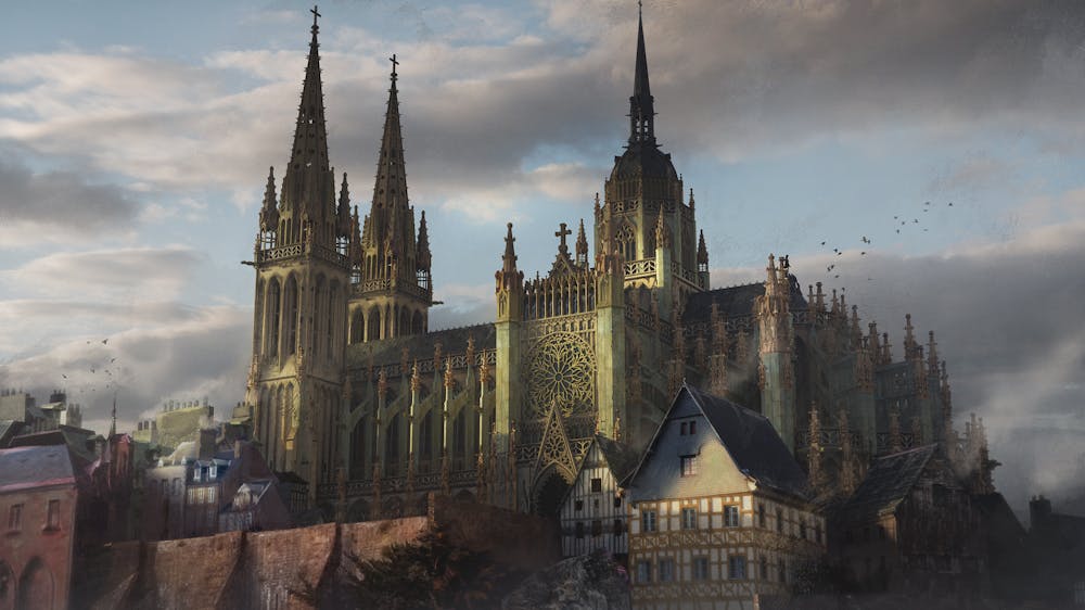 At the center of the city stands a grand cathedral, and a lot of important story events will take place there.