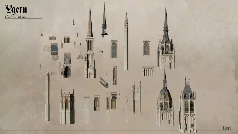 I've always liked building sets, and I've had the idea of creating my own kit for a while. So to build this cathedral, I created a kit on blender based on the references quoted earlier, and then used other personal kits and some scans found on sketchfab to do the environment around.
